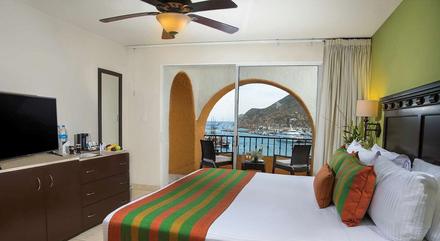 The resort has 256 rooms, and your buddies will receive upgraded Marina View Junior Suites fully equipped with satellite TV and a mini-bar. Air conditioning and a safety deposit box are also included. This spacious suite features a king-sized bed and small sofa bed, a private balcony or small terrace with panoramic views of the Cabo San Lucas marina and Sea of Cortez. Mad Men who visited Ireland will remember the houses we stayed in, we would say the Junior Suites at Tesoro are an upgrade and offer better views.