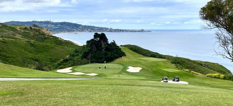 Staying at the Hilton La Jolla Torrey Pines allows access to preferred tee times. We'll play both courses, the North and South.
