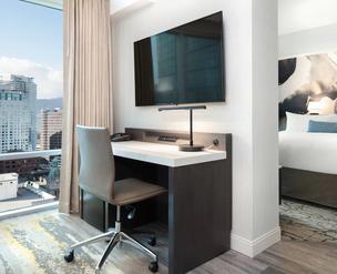 Delta Hotels by Marriott Vancouver Downtown Suites is an all-suite hotel situated in the heart of downtown Vancouver, near the historic Gastown district. The modern, Big City vibe of this Marriott property lends an air of sophistication to this all-suites hotel. The hotel provides everything both business and leisure visitors would need for a comfortable stay at a short distance from everything downtown Vancouver has to offer. For those who forgot to pack everything they may need, the hotel is in a walkable area in Vancouver with good shopping. The Delta Hotels by Marriott Vancouver Downtown Suites provides dry cleaning/laundry services, a bar, and an onsite local cuisine restaurant, Stock & Supply, features happy hour and light fare. Guests can connect to free in-room WiFi. Other perks include: Express check-out, smoke-free premises, and 24-hour front desk.